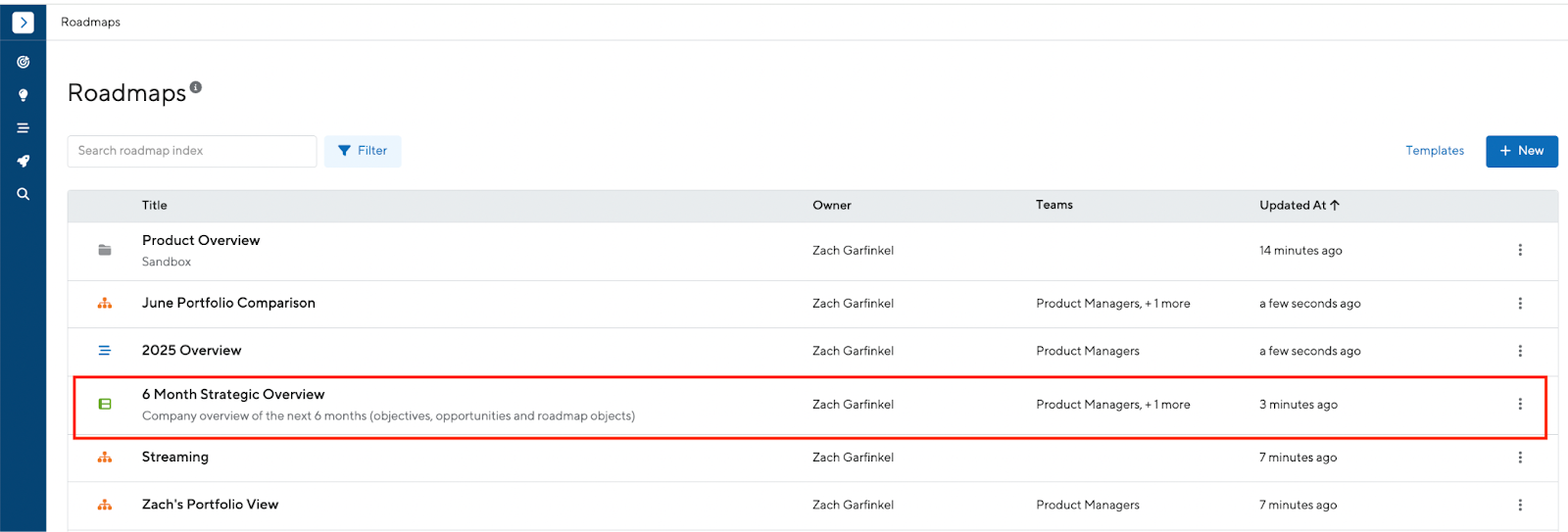 - Strategic portfolio views can be accessed and searched in the roadmap index homepage