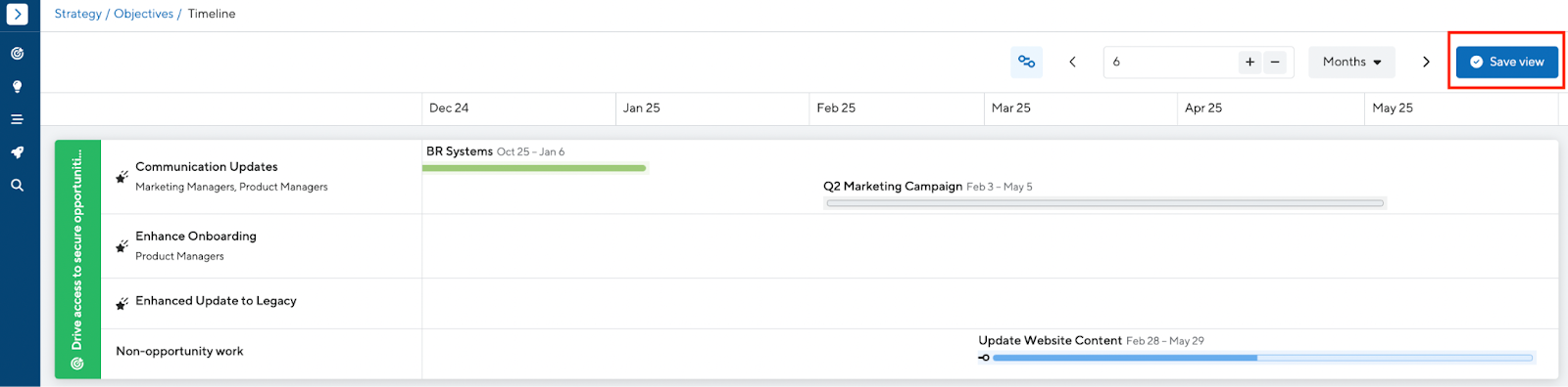 Strategic Portfolios are now more collaborative and flexible. Customize, save and share portfolio views to streamline strategic objective management across your organization.